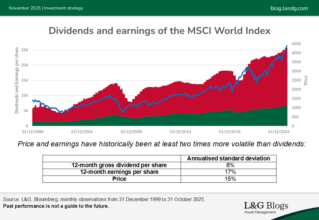 This mean dividends have historically fluctuated less than share prices, as shown below.
