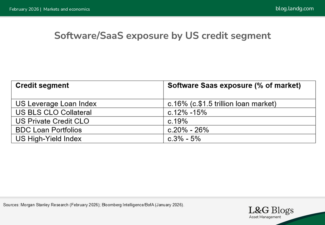 There is also considerable dispersion in the performance of software loans. The sector is broad, and some business models are far more exposed to AI‑driven disintermediation than others. Enterprise software providers, with deeply embedded customer relationships and sticky, mission-critical revenue streams, appear relatively insulated. By contrast, certain application‑based software firms may face greater competitive pressure, depending on how close their products sit to the underlying data and how large the total addressable market (TAM) is.