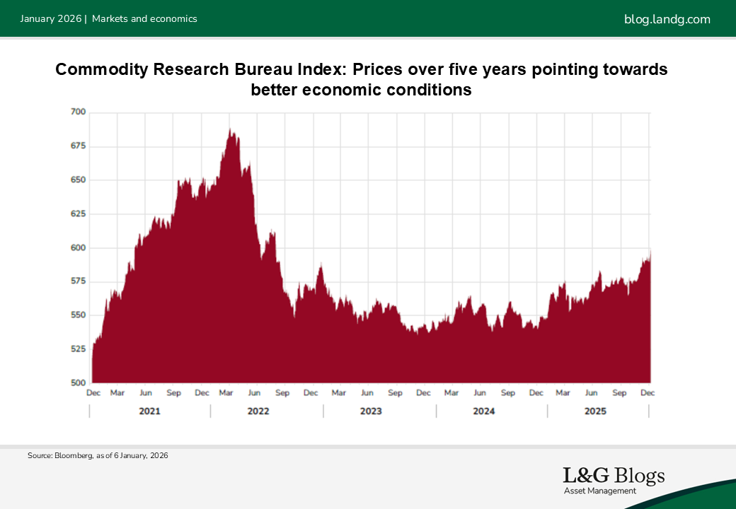 There is also one small glimmer of hope in economic fundamentals: a sign that growth expectations outside of the US might be quietly improving. The Commodity Research Bureau’s Spot Raw Industrials Index, a leading indicator of economic activity, tracks basic materials used directly in manufacturing and industrial processes. The underlying prices come from actual traded spot transactions, giving a better picture of real-world supply/demand pressures for these materials. We believe this points to an improving environment globally as we enter 2026.