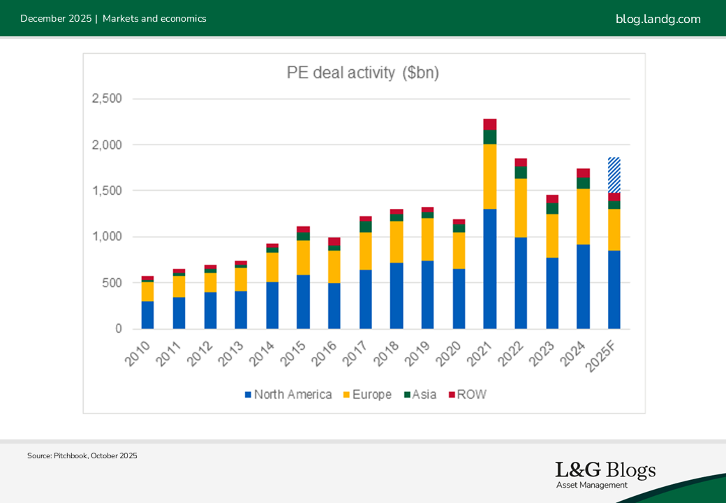 Private equity deal activity bounced back in 2025, boosted by a recovery in M&A transactions. Despite tariff uncertainties and a strong European equity market, the US continued to dominate transactions thanks to strong interest in AI and other technology sectors. Exit activity has also been higher than 2024, although a portion of these are to continuation vehicles rather than ‘true’ exits.