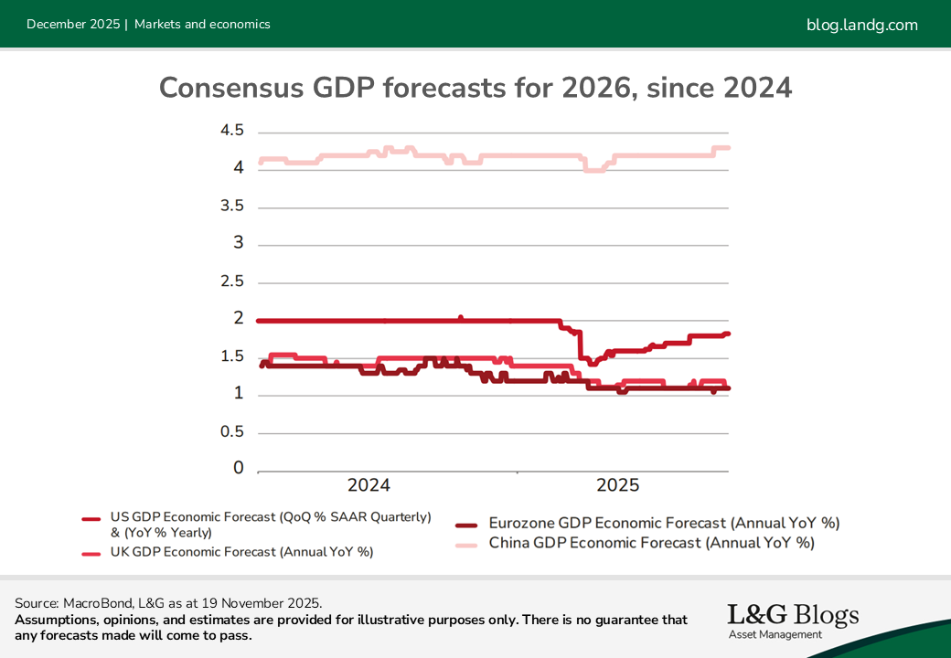 Looking ahead, consensus forecasts reflect a return to equilibrium in a number of economies during 2026, with global growth around trend, unemployment close to its natural rate, inflation potentially on a path towards target and many central bank rates moving to near ‘neutral’.